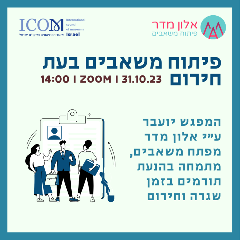 איגוד המוזאונים ואיקו"ם ישראל מזמין למפגש מקוון מיוחד בנושא פיתוח משאבים בעת חירום, עבור המוזאונים עם אלון מדר, מומחה בפיתוח משאבים.